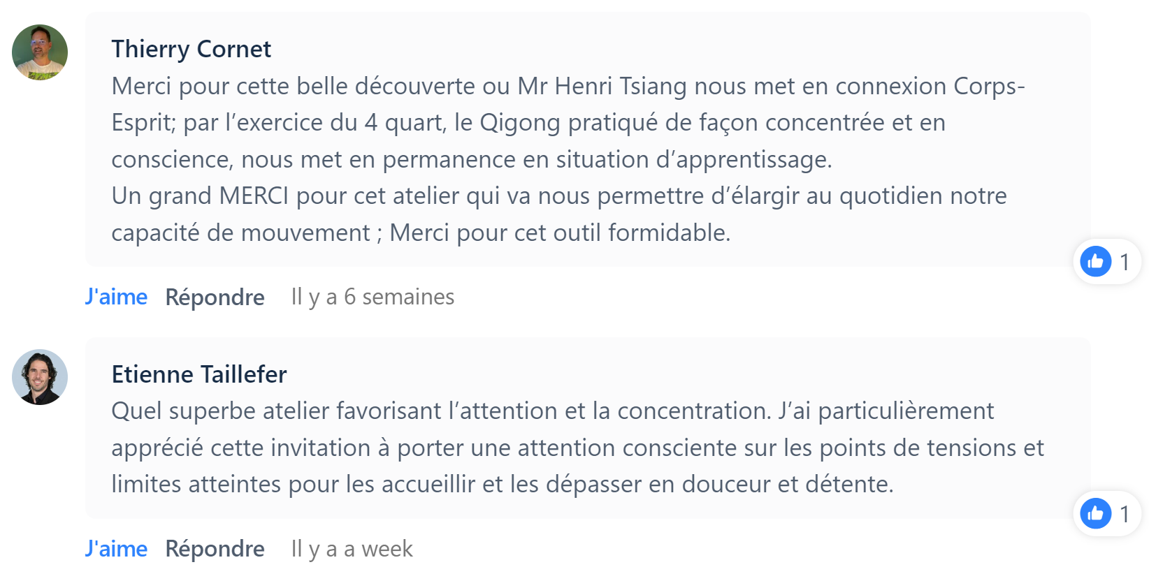 Joignez vous à moi dès maintenant afin d’explorer l’art anciens du qigong et intégrer ensemble une routine d’exercice sur une base régulière, pour plus de santé et vitalité chaque jours.